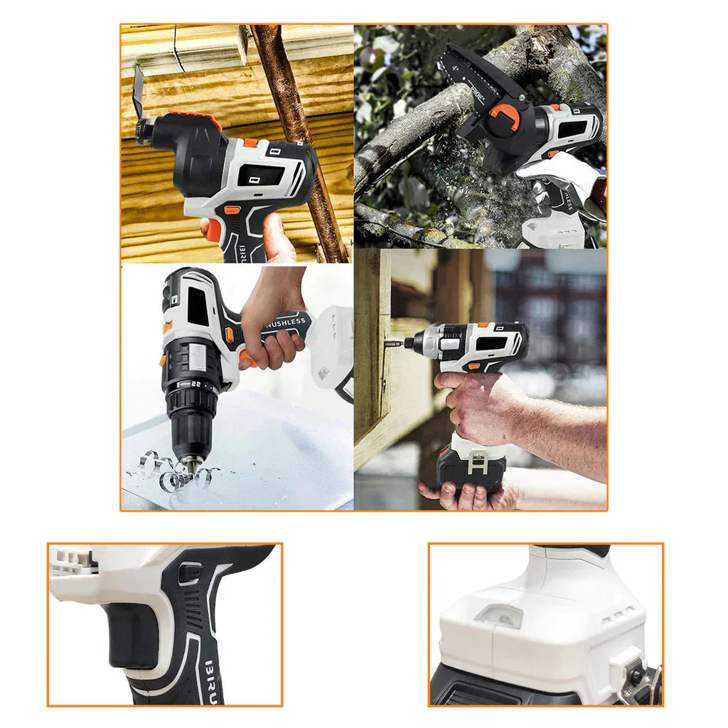 Descubra a solução definitiva para todos os seus projetos de bricolagem e construção com o nosso Kit 10 em 1 Parafusadeira, Lixadeira, Serra e Martelete Profissional! Desenhado para profissionais e entusiastas que não se contentam com menos que a excelência, este kit é a combinação perfeita de desempenho, versatilidade e durabilidade.